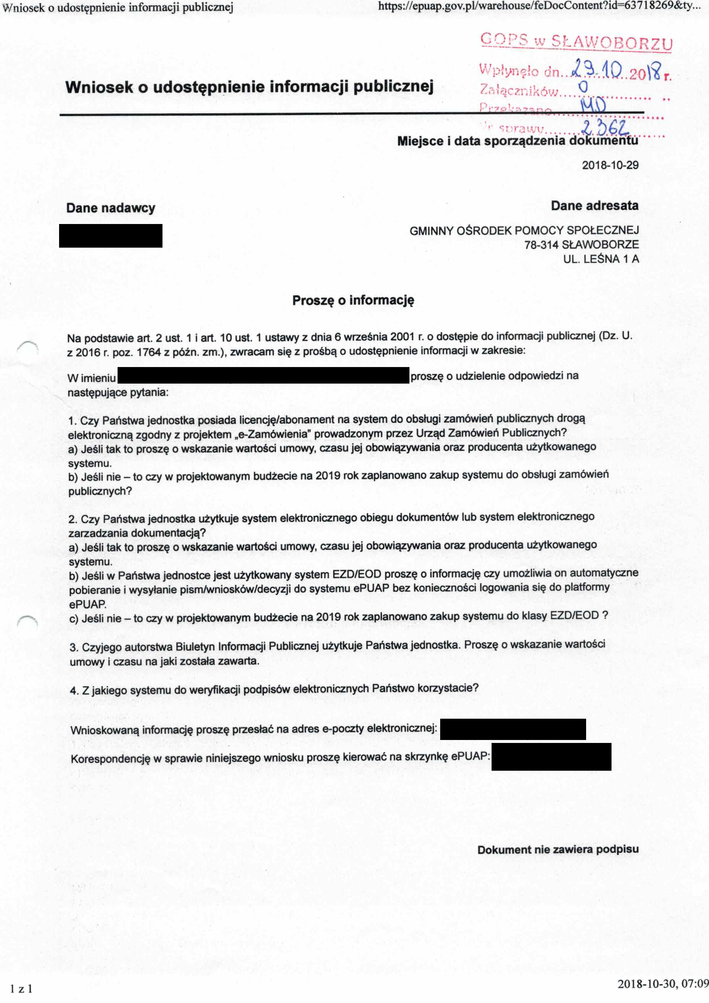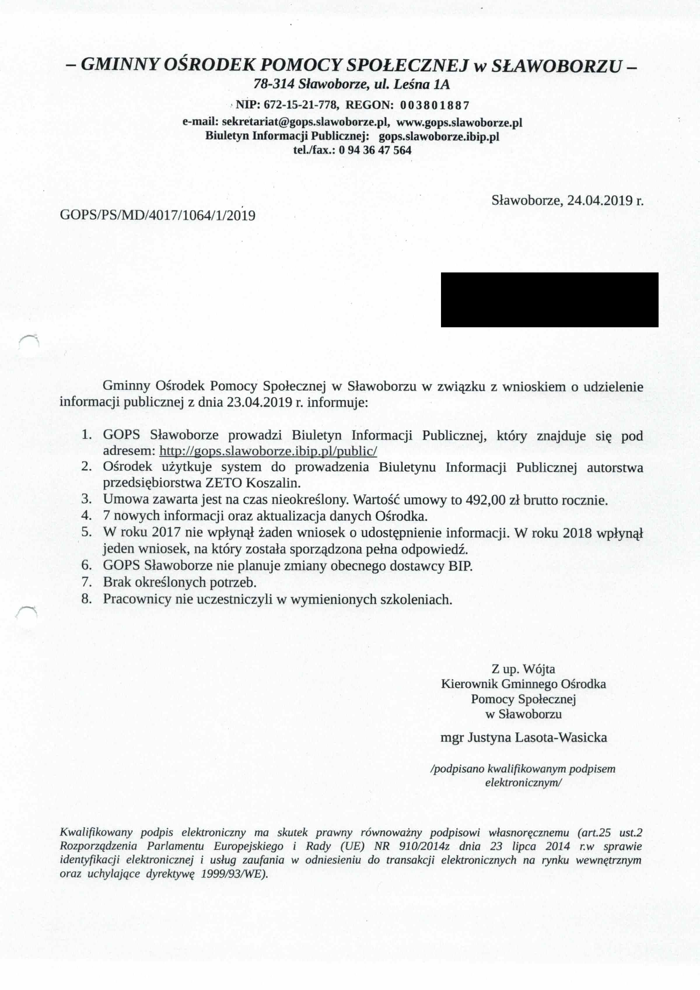 | 1 | 23.04.2019 r. | Zapytanie o informacje publiczne i Biuletyn Informacji Publicznej | pobierz | pobierz |